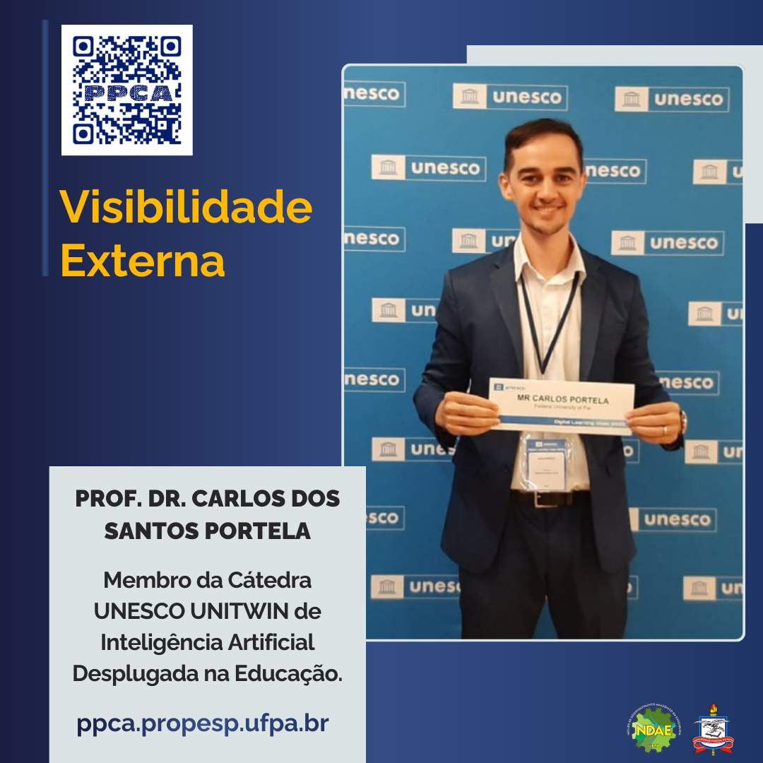 Como membro da Cátedra, o professor Carlos Portela representa a UFPA em uma rede internacional de cooperação acadêmica e tecnológica. Em setembro de 2025, ele participou do evento Digital Learning Week 2025, realizado na sede da UNESCO, em Paris, onde contribuiu para discussões sobre inteligência artificial, equidade e educação digital em contextos de baixa conectividade. Sua atuação reforça o compromisso da UFPA com a internacionalização da pesquisa, a inclusão tecnológica e o uso ético e sustentável da IA na educação.